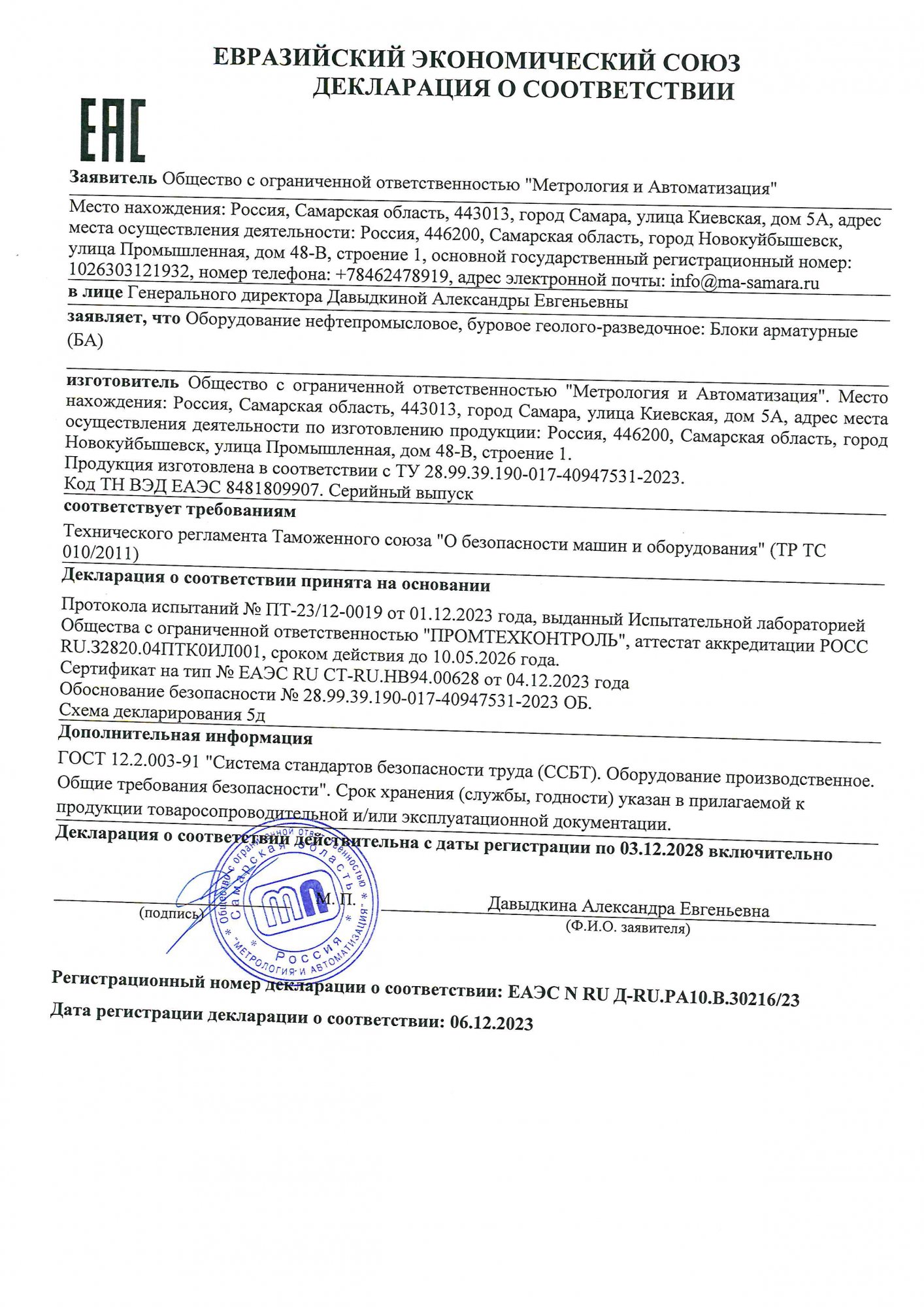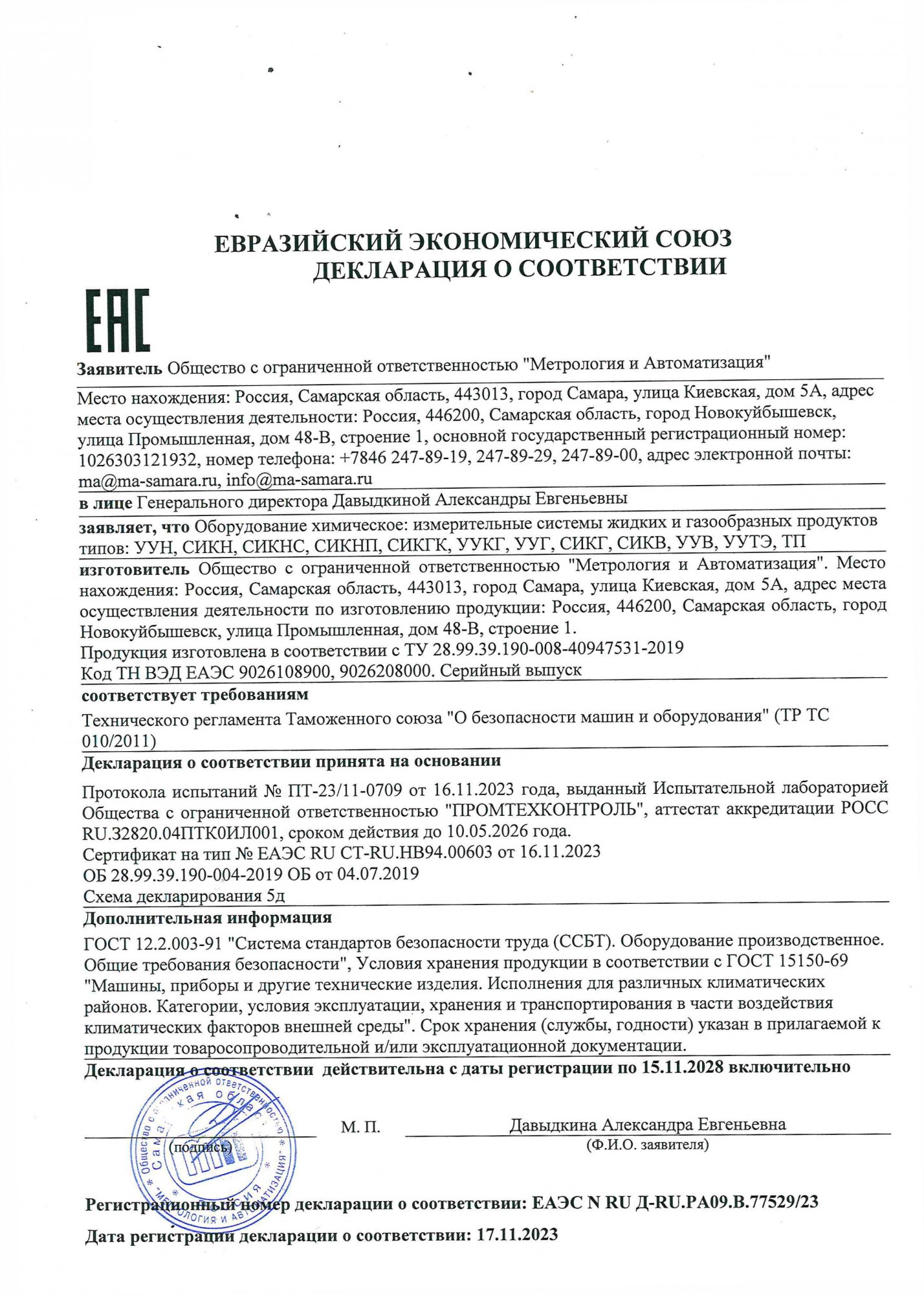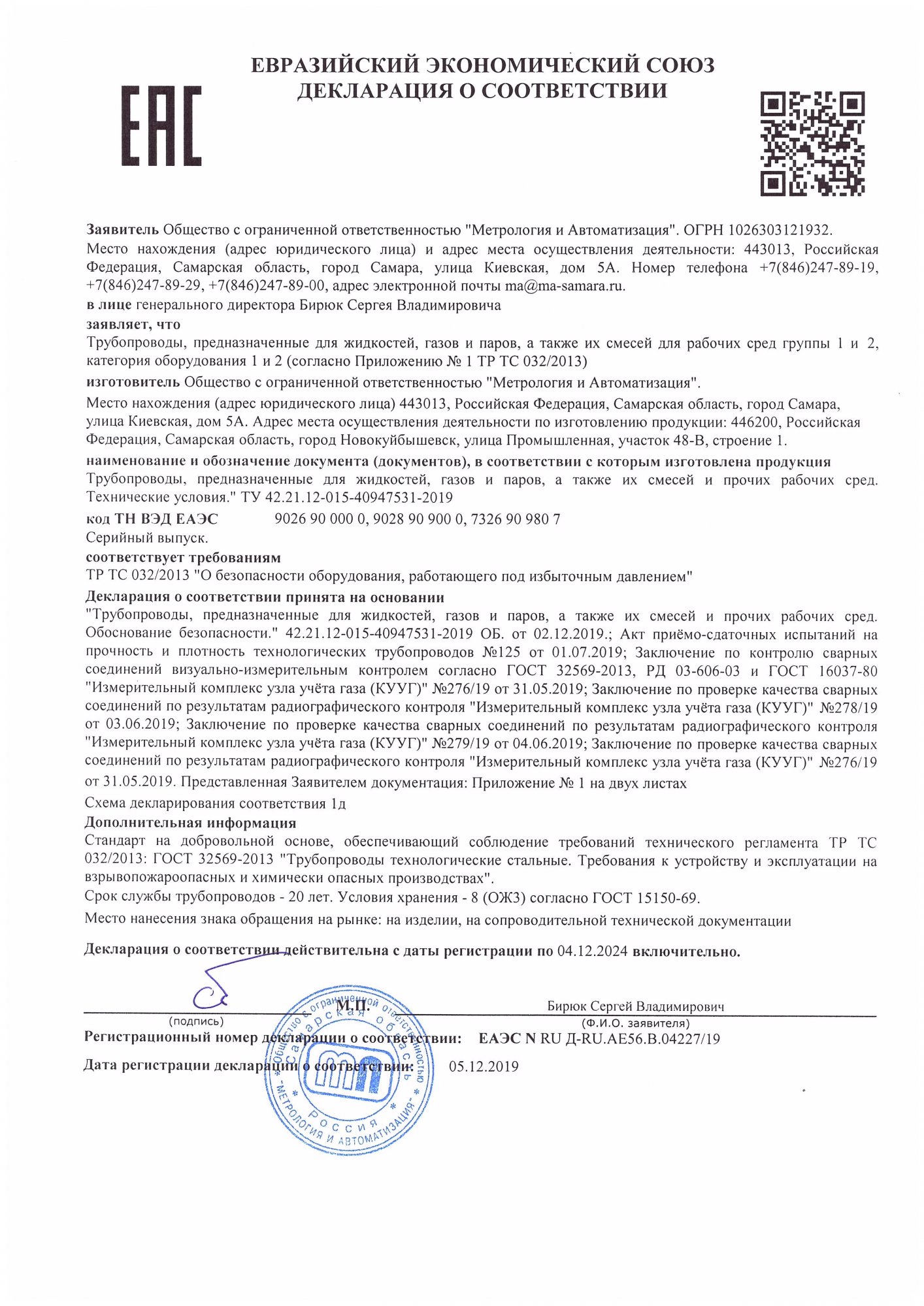 Декларация о соответствии техническому регламенту Таможенного союза.