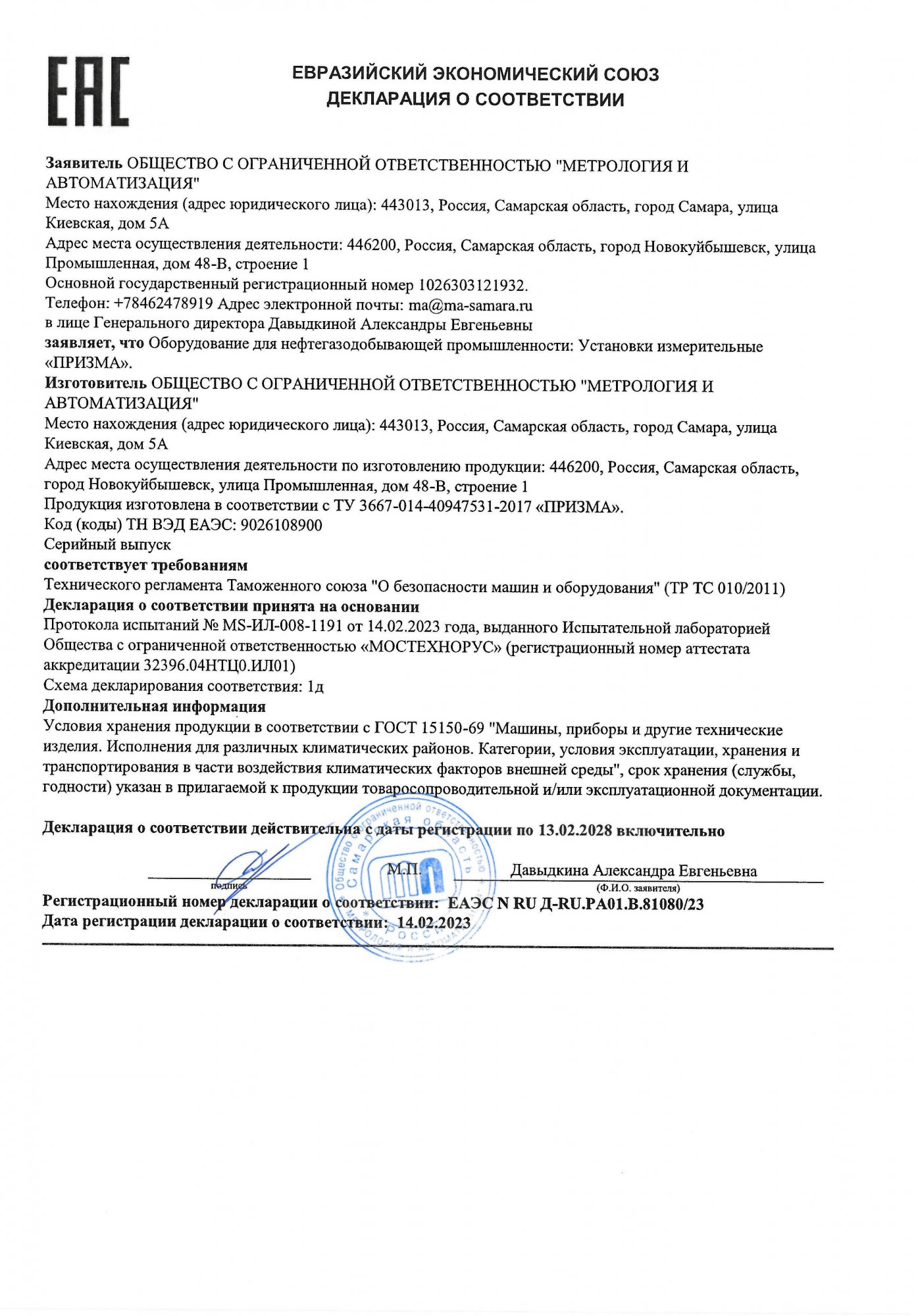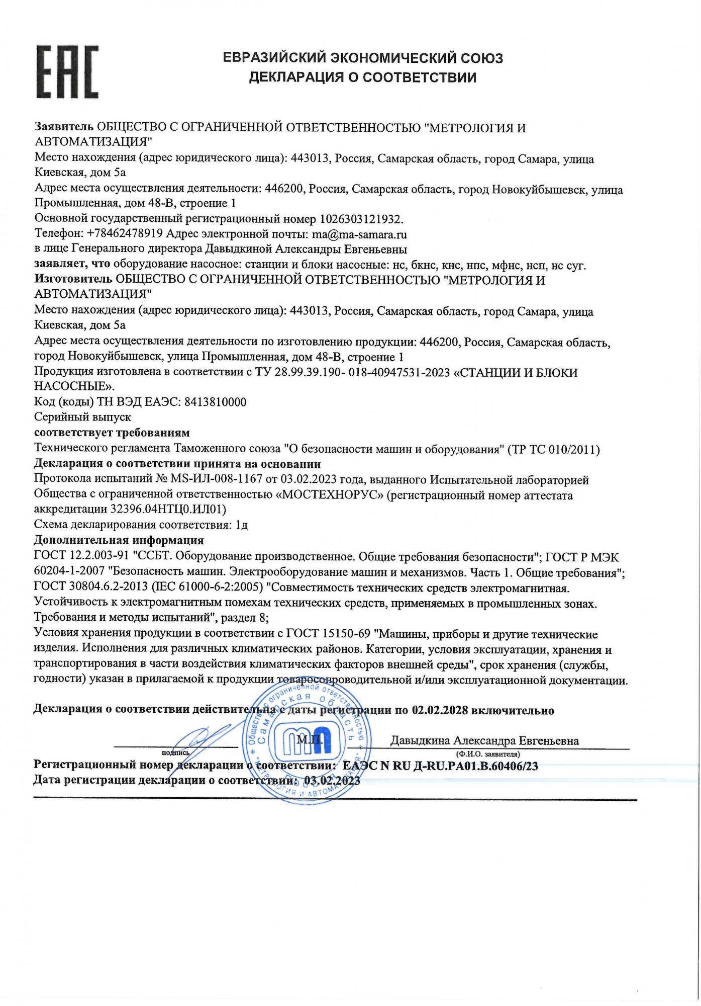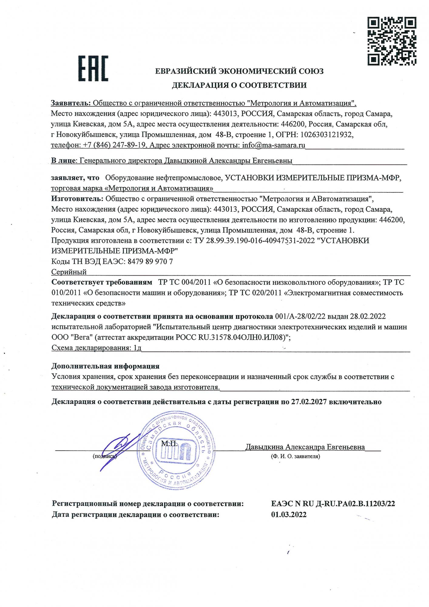 Декларация о соответствии техническому регламенту Таможенного союза.