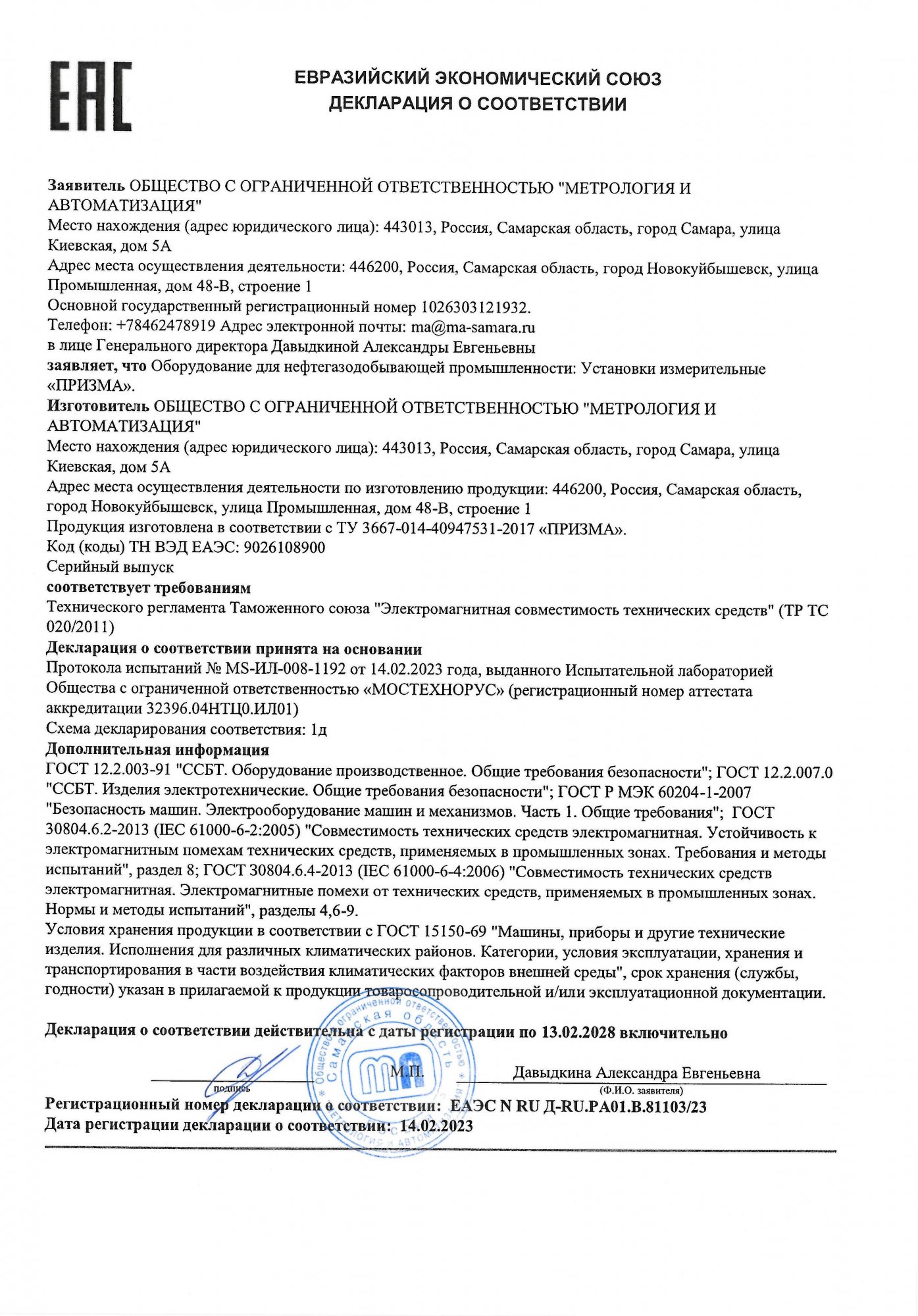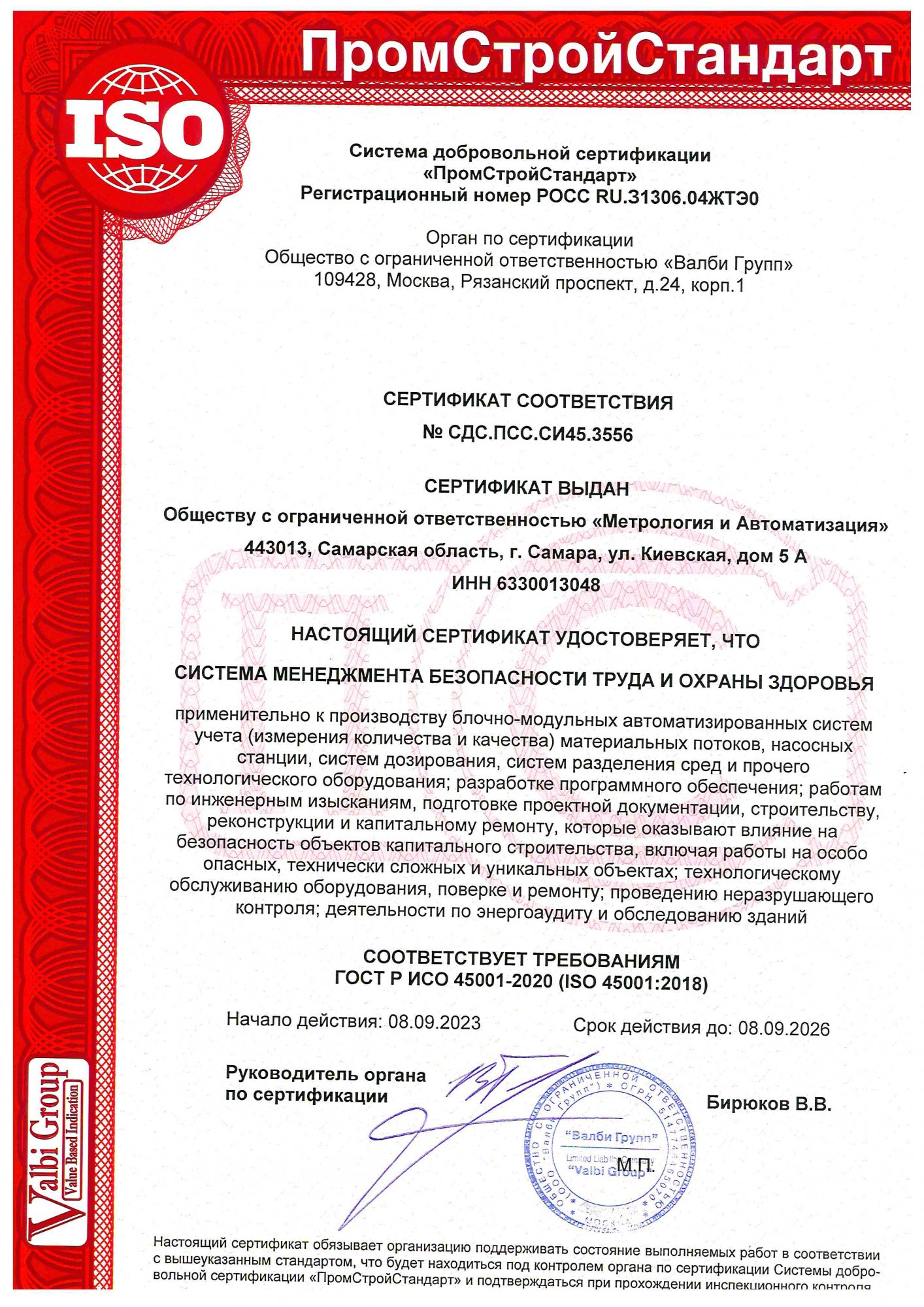 Сертификат соответствия № СДС.ПСС.СИ45.3556 выдан 08.09.2023г.