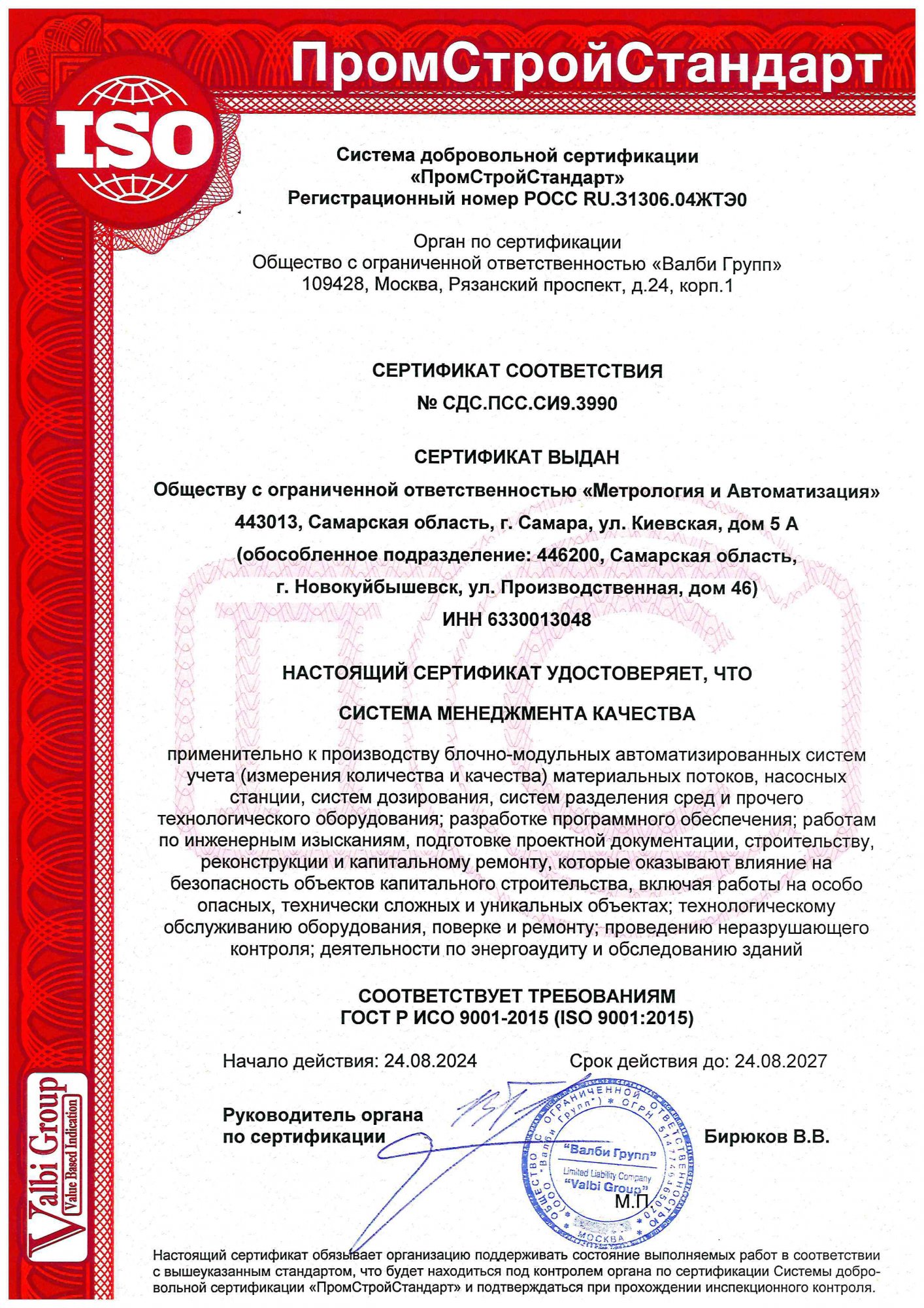 Сертификат соответствия № СДС.ПСС.СИ9.3990 выдан 24.08.2024г.