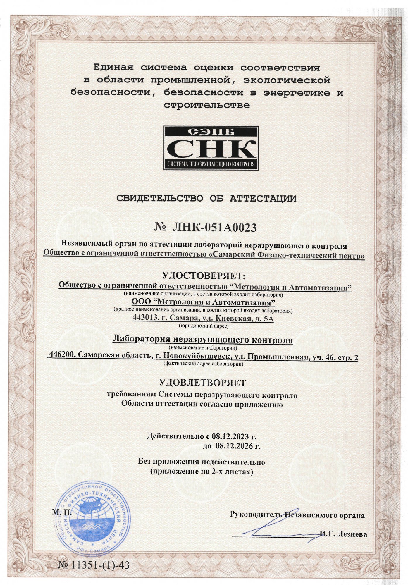 Свидетельство об аттестации № ЛНК-051А0023 выдан 08.12.2023г.