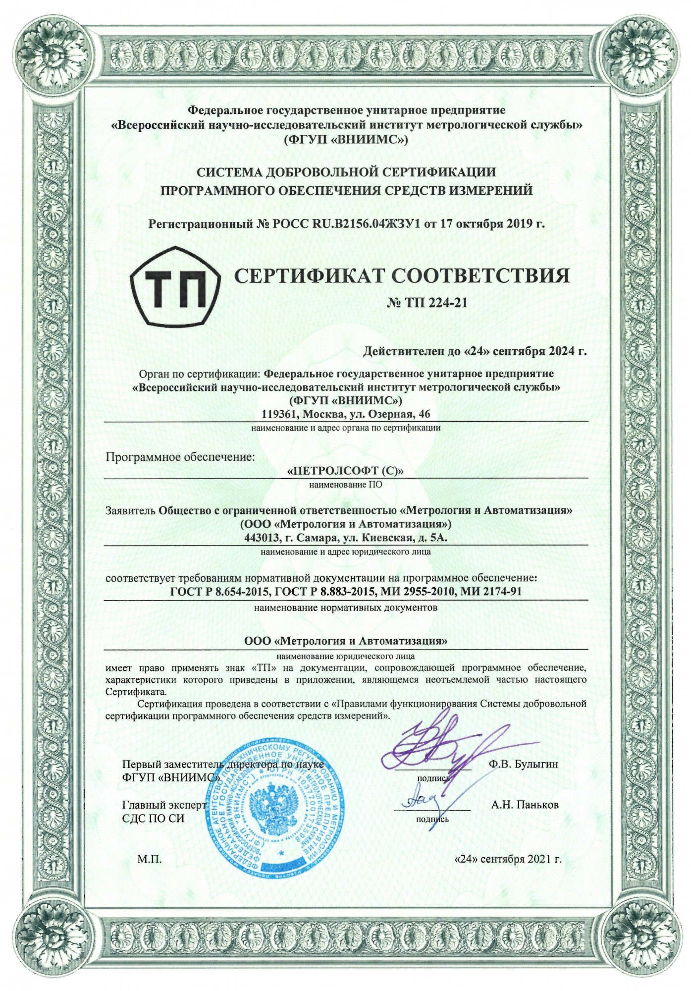 Сертификат соответствия ПО ПЕТРОЛСОФТ (С)