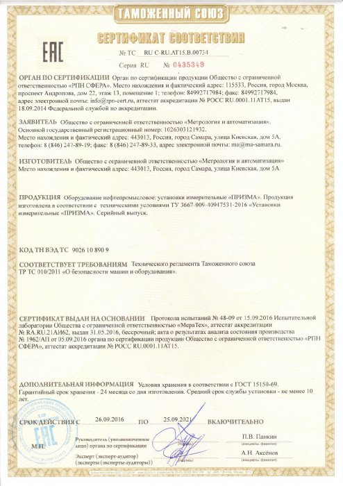 Сепаратор, предназначенный для разделения извлечённой из скважины водонефтяной эмульсии на газовую и жидкостную фазы. Сепаратор оснащён системой автоматизированного управления, обеспечивающей заданные технологические режимы измерений.